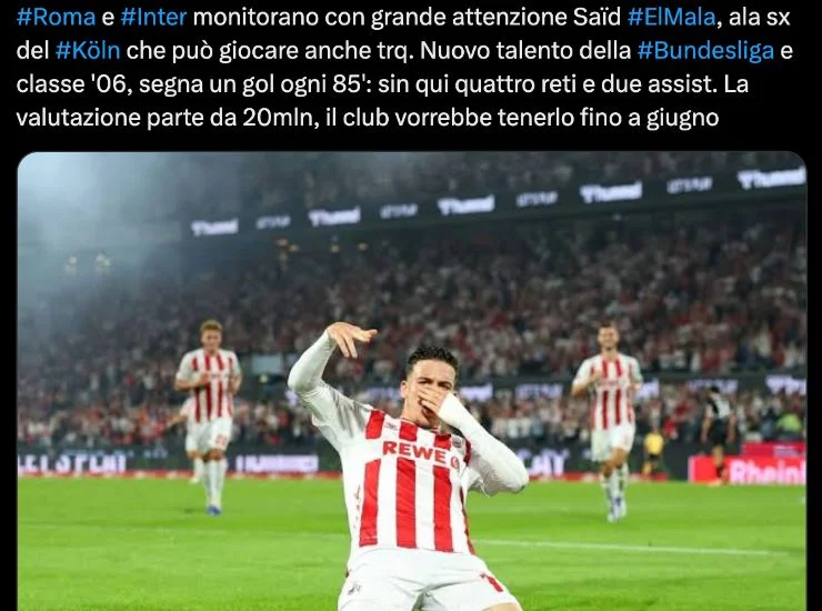 Secondo le ultime indiscrezioni di mercato Roma e Inter sarebbero alla ricerca di un rinforzo per la propria trequarti. Sia Chivu che Gasperini vorrebbero inserire un uomo dotato di estro e imprevedibilità. Stiamo parlando ad esempio del talento del Colonia Saïd El Mala.